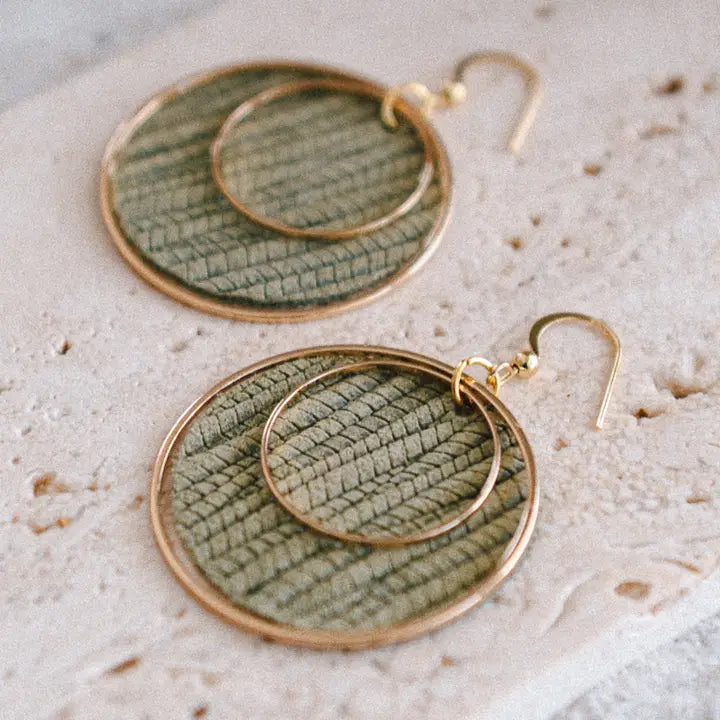 Make a bold statement with these handcrafted boho leather hoop earrings! Featuring leather in a warm earthy tone, framed by elegant gold-tone hoops, these earrings are the perfect fusion of rustic charm and modern style. Lightweight and versatile, they’re ideal for everyday wear or as a unique accent for special occasions.