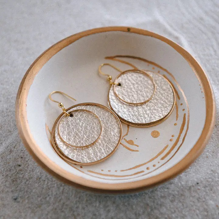 Make a bold statement with these handcrafted boho leather hoop earrings! Featuring leather in a warm earthy tone, framed by elegant gold-tone hoops, these earrings are the perfect fusion of rustic charm and modern style. Lightweight and versatile, they’re ideal for everyday wear or as a unique accent for special occasions.