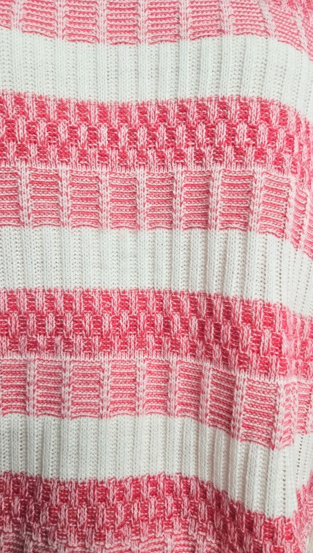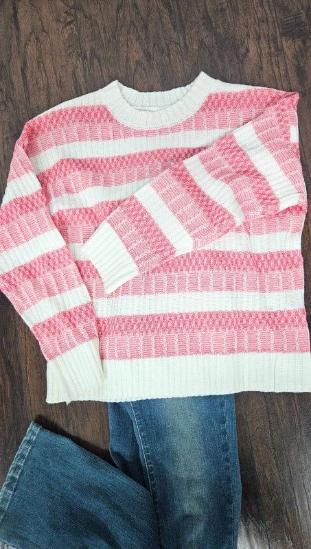 Wrap yourself in cozy comfort with this textured stripe sweater featuring soft yarn in a playful hot pink hue. The dimensional striping adds visual interest while the luxurious fabric feels amazing against your skin. Perfect for layering or wearing solo, this versatile piece brings warmth and style to your everyday wardrobe. Whether you're heading out or staying in, this sweater is your new go-to for effortless, feel-good fashion.