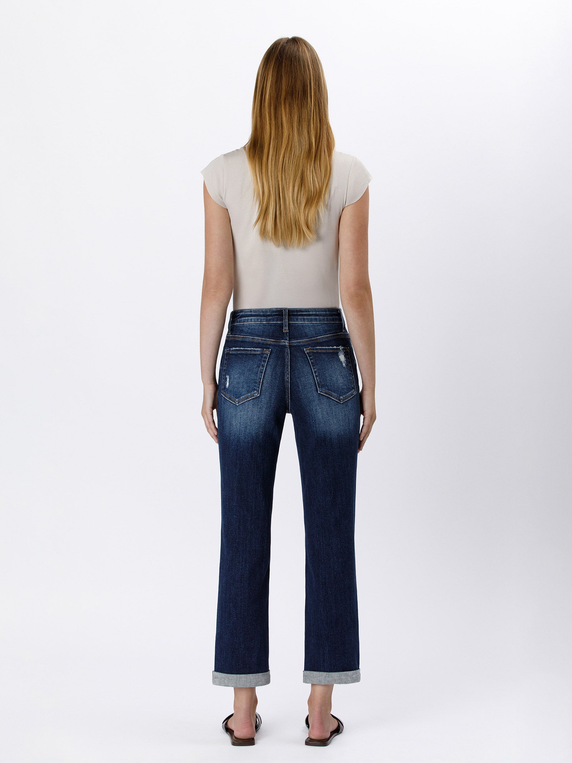 • HIGH RISE WAIST, DISTRESSED DETAIL