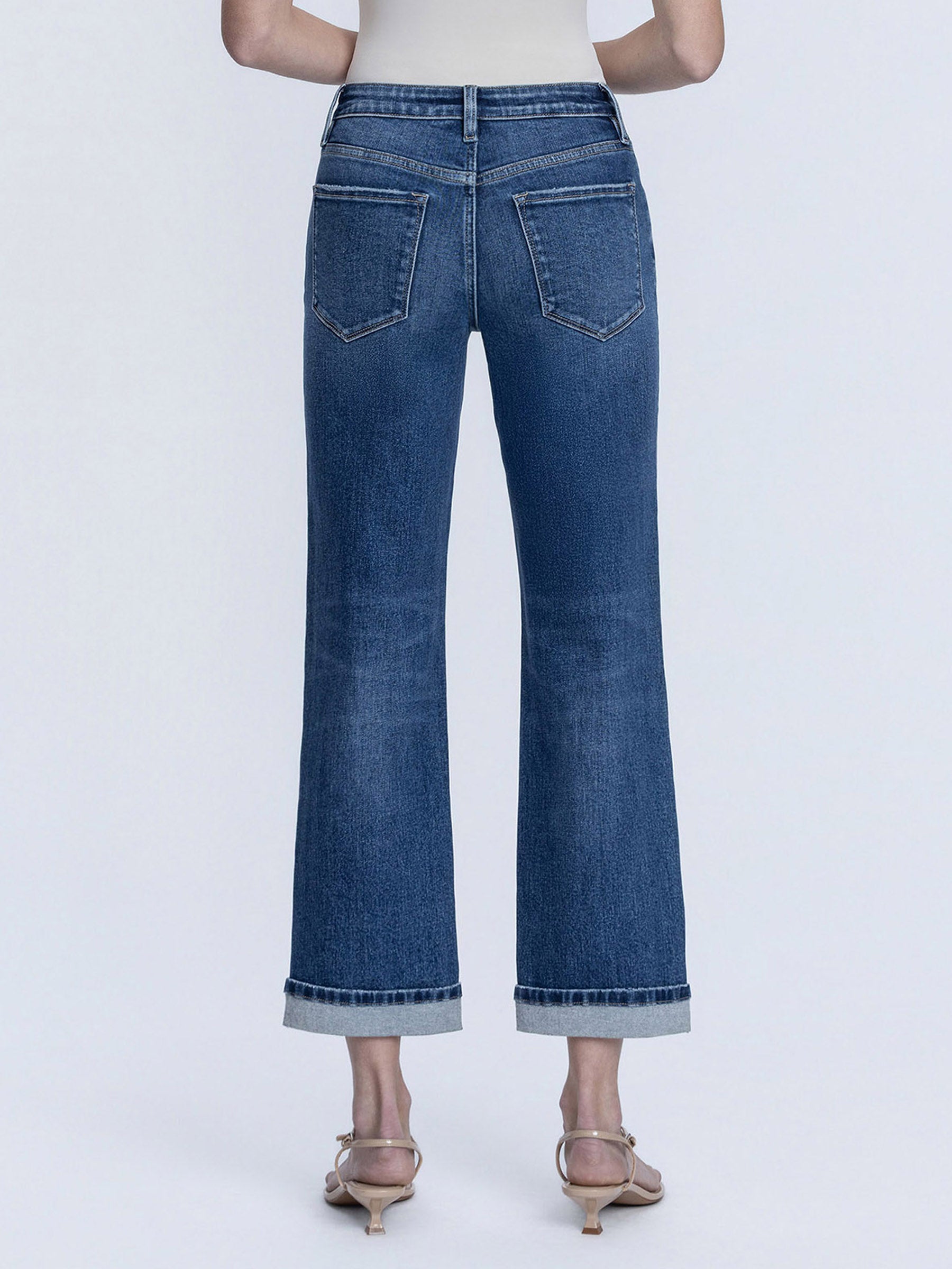 Harmonious High Straight 27" jeans deliver everyday comfort with a high-rise waist and straight leg silhouette. Crafted from comfort stretch denim in a classic dark wash, these jeans feature five functional pockets and a single cuff hem for a polished cropped length. Perfect for effortless styling that works from day to night.