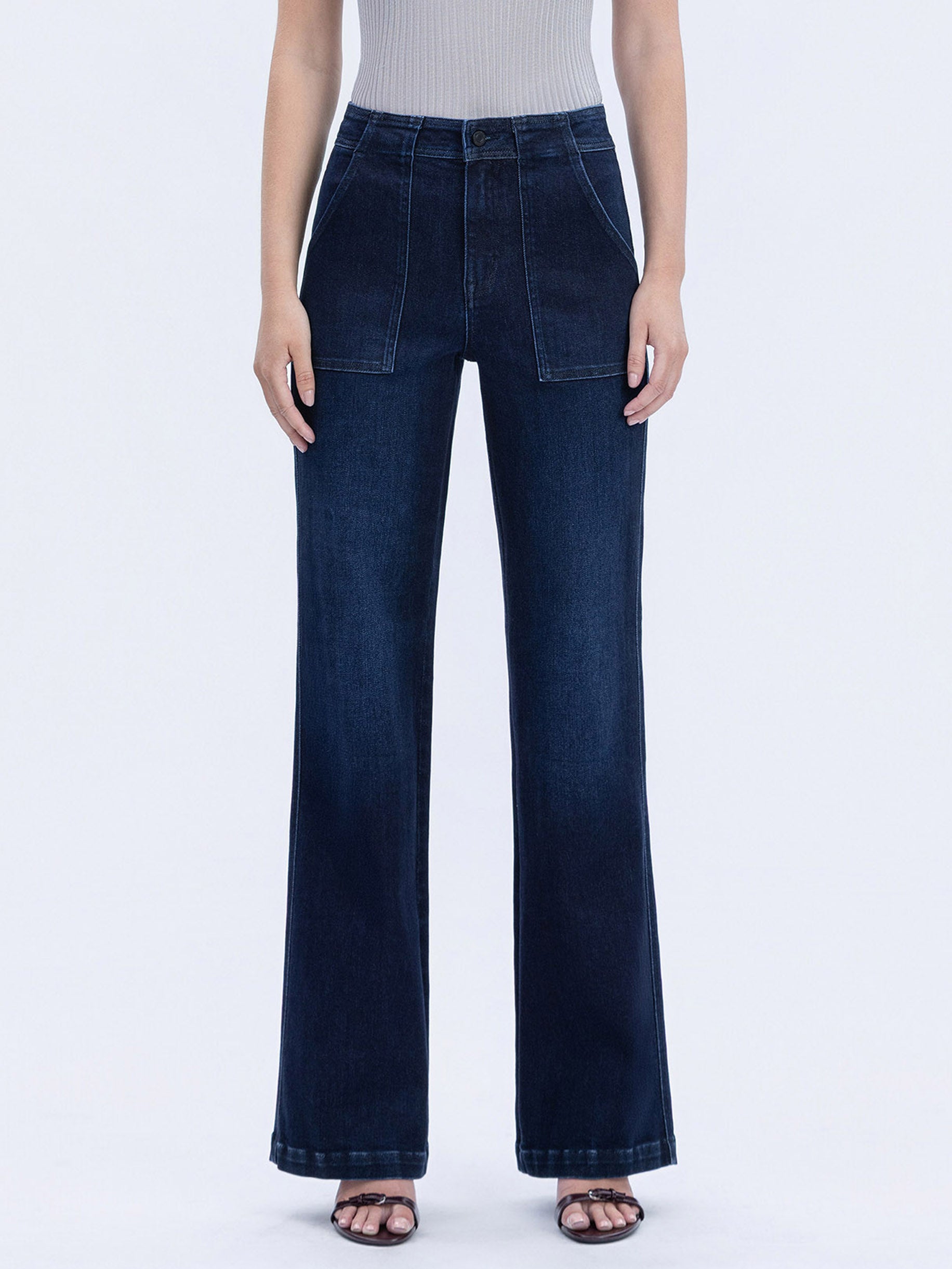 These Reflect Super High Flare jeans combine comfort and style with their stretch denim fabric and super high rise waist, offering a flattering fit and all-day ease. The vintage-inspired flare and finished hem create a timeless silhouette, while the thoughtful pocket details add practical appeal. Perfectly full length, they bring a polished look to any outfit.