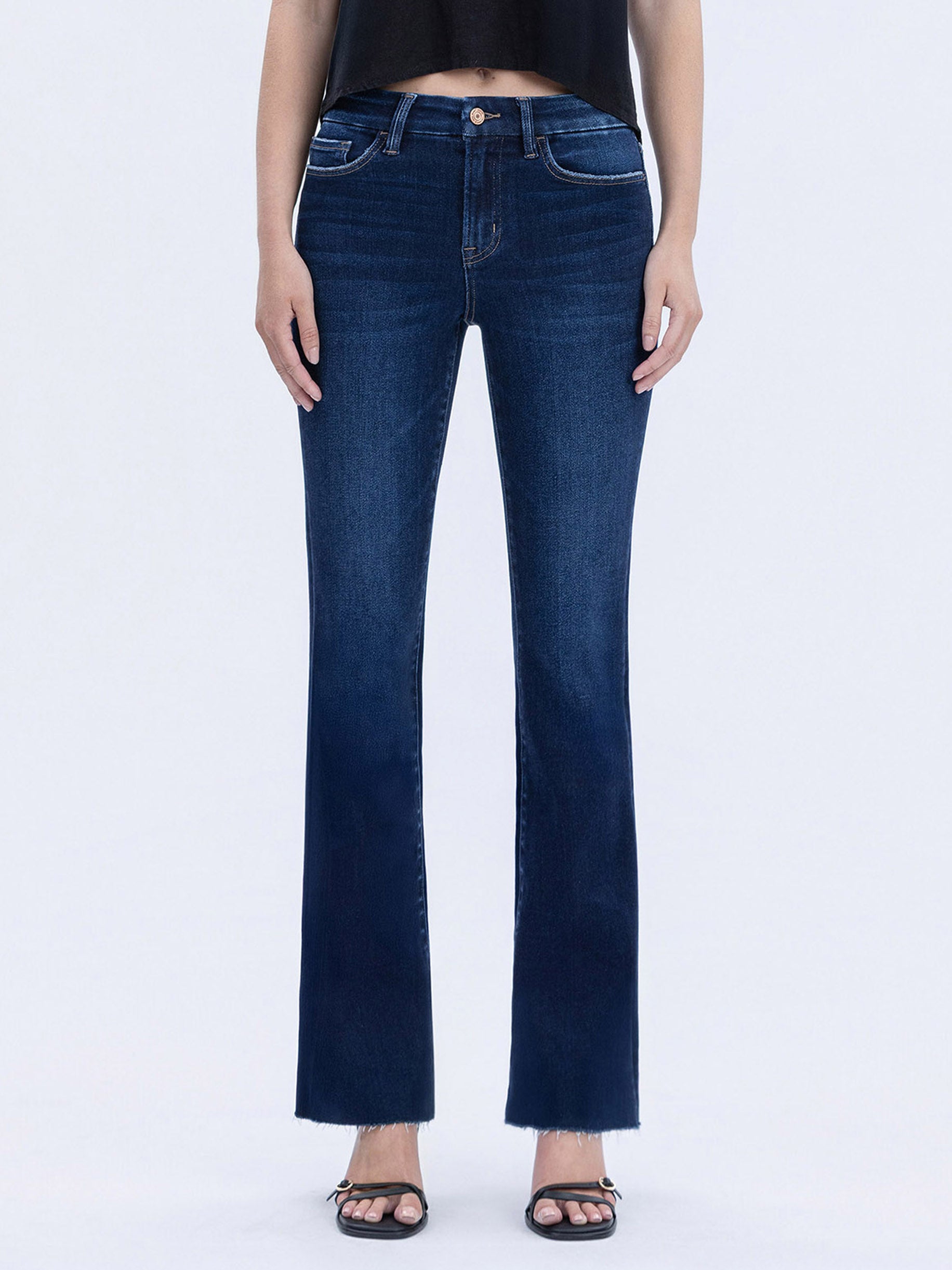 Uplifted High Bootcut jeans deliver all-day comfort with a stretchy fabric that moves with you. The high-rise waist flatters your silhouette while the seamless waistband eliminates uncomfortable digging. Five functional pockets keep essentials within reach, and the raw hem adds an effortless, on-trend finish. Crafted in a rich dark wash, these full-length bootcut jeans transition seamlessly from casual weekends to dressed-up nights.