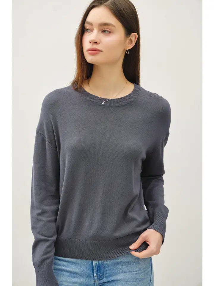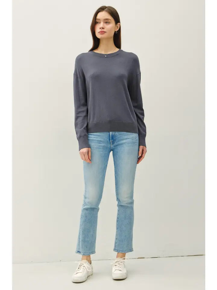 Wrap yourself in cozy charm with the Poppy Blue Sweater. This lightweight, soft-touch top features long sleeves and a relaxed fit that feels like a gentle hug. Its drop shoulder and round neck design add an effortless, playful vibe perfect for layering or lounging. Stay comfy and cute no matter where your day takes you!
