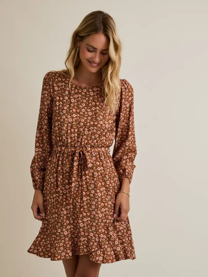 The Confident Beauty Dress features a flattering cinched waist with a tie detail, creating a graceful silhouette you'll love. Its delicate floral pattern adds charm, while the round neckline and long sleeves offer comfortable coverage for any occasion. This dress combines elegance with ease, making you feel poised and beautiful throughout the day.