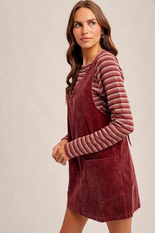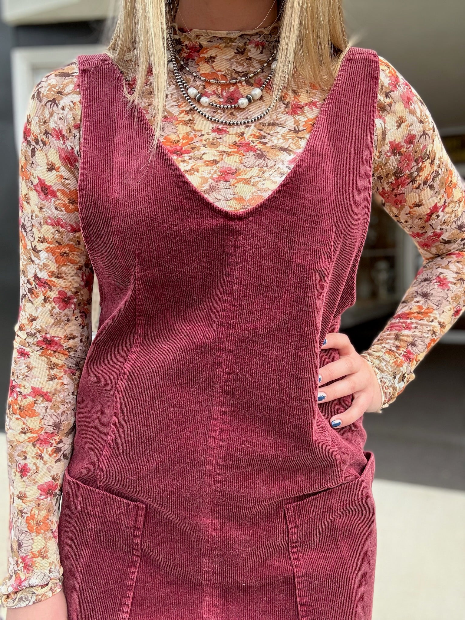 Elevate your wardrobe with the Raspberry Love Dress, a snow wash corduroy pinafore overall designed for effortless style and comfort. Its soft, textured fabric brings warmth and a touch of vintage charm, while the versatile pinafore silhouette lets you layer creatively for any season. Perfect for casual days or dressed-up occasions, this dress combines practicality with timeless appeal to make every outfit uniquely yours.