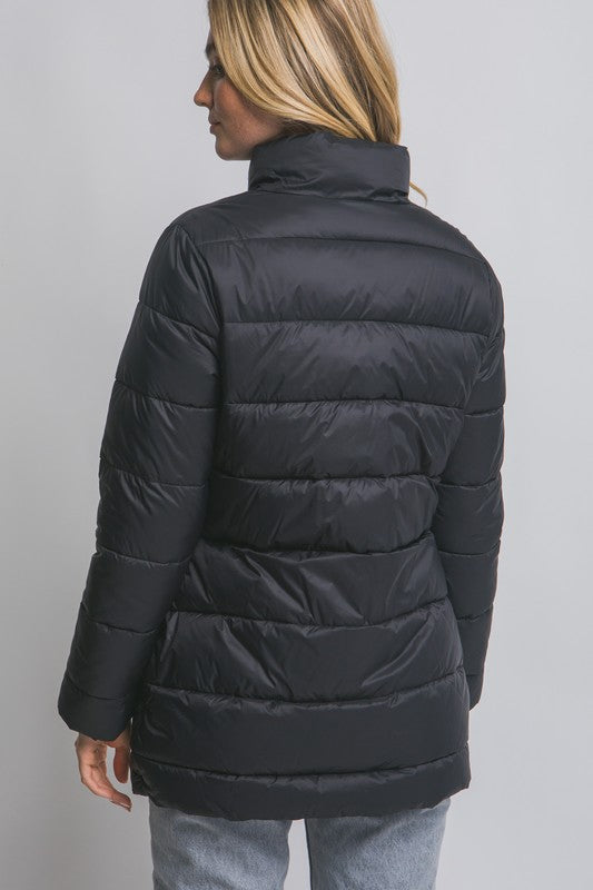 Stay cozy and stylish with this Black Quilted Puffer! Featuring side zipper pockets perfect for stashing your essentials, a full zip closure for easy layering, and long sleeves to keep you warm, it’s your new go-to jacket for chilly days. Ready to zip into comfort and fun?