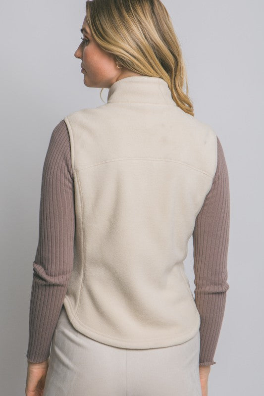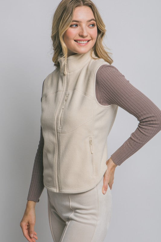 The Sandy Fleece Cream Vest is your go-to layer for effortless warmth and style. Crafted from soft fleece, this versatile piece features a full zip closure for easy on-and-off wear, a stand-up collar for extra coziness, and zippered pockets to keep your essentials secure. Perfect for layering over your favorite tee or pairing with a button-down, this cream-colored vest transitions seamlessly from casual outings to relaxed weekends. A timeless addition to any wardrobe.