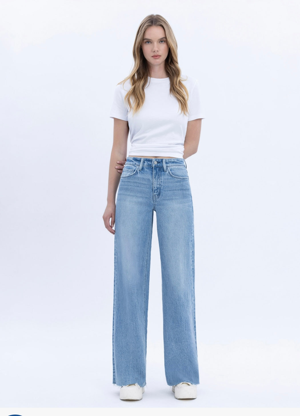 These aren't your grandma's jeans—they're the Poprock High Wides, and they're here to make you feel like the coolest version of yourself. With a comfortable stretch denim that moves with you, a high-rise waist that flatters and supports, and a trendy raw hem that screams effortless style, these full-length wide-leg beauties are your new go-to. The light-medium wash keeps things fresh and versatile, ready to pair with literally everything in your closet.