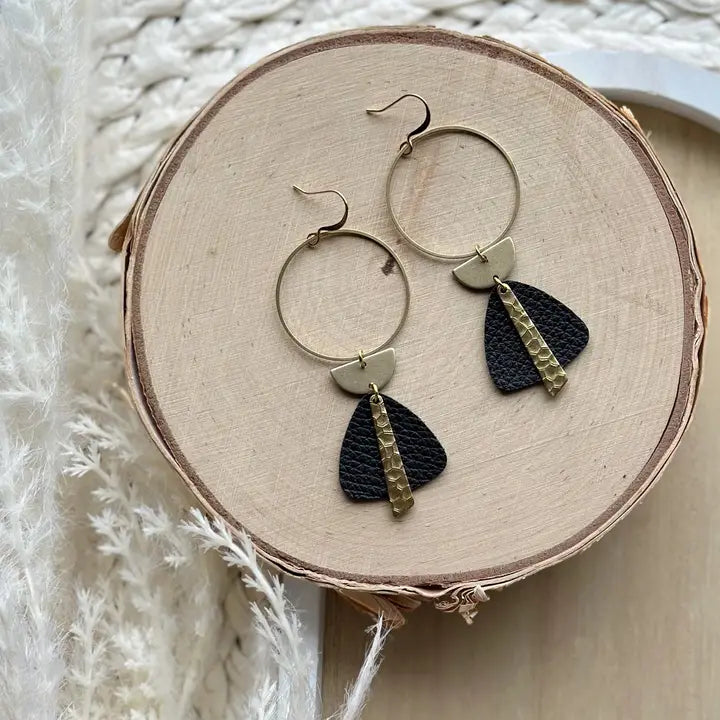 Bold + gold. Beautiful brass hoops paired with geometric leather create a simple, bold statement.