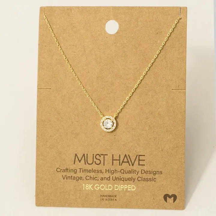 This trending necklace displays a vibrant gold dipped cubic zirconia halo pendant necklace style. Witness the transformative power of accessories as this piece effortlessly redefines your fashion narrative.