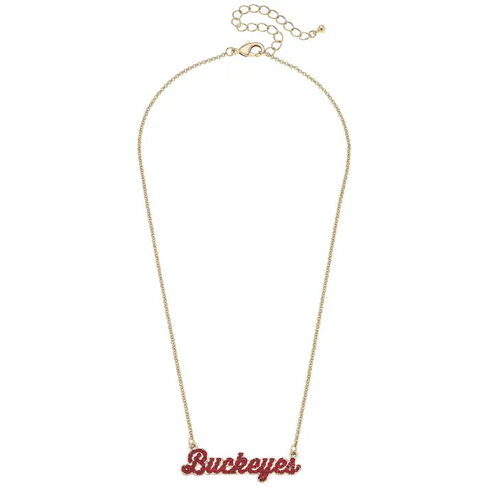 Add a touch of glamour to your team spirit with the Ohio State Buckeyes Pave Autograph Enamel Necklace in Red. Featuring the Buckeyes’ logo in red enamel with pave rhinestones for extra sparkle, this necklace will make you shine while showing your loyalty.