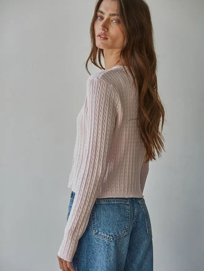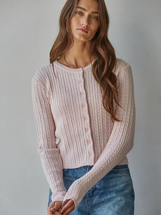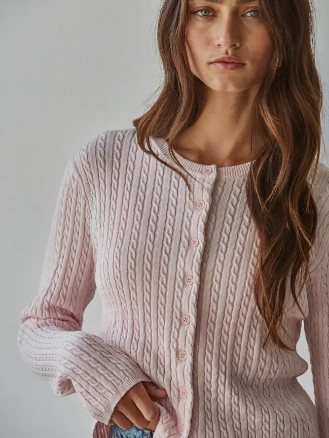 Wrap yourself in cozy elegance with this Ballet Pink Cardigan, a timeless knit essential that works as hard as you do. Crafted from soft cotton with a classic cable knit texture, this crew neck beauty features long sleeves and convenient button-down styling for effortless layering. Perfect for everything from casual coffee dates to polished office days, it's the versatile piece your wardrobe has been waiting for. Layer it, tie it, or wear it solo—this charming cardigan is your new go-to for comfort that never compromises on style.