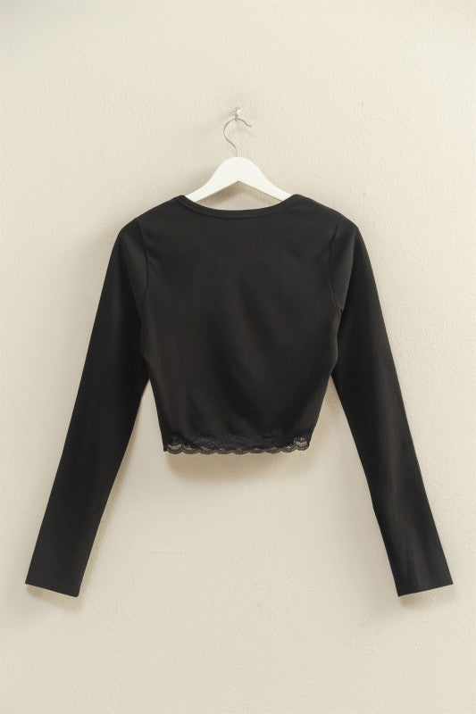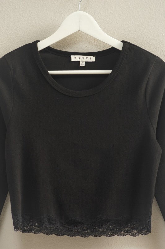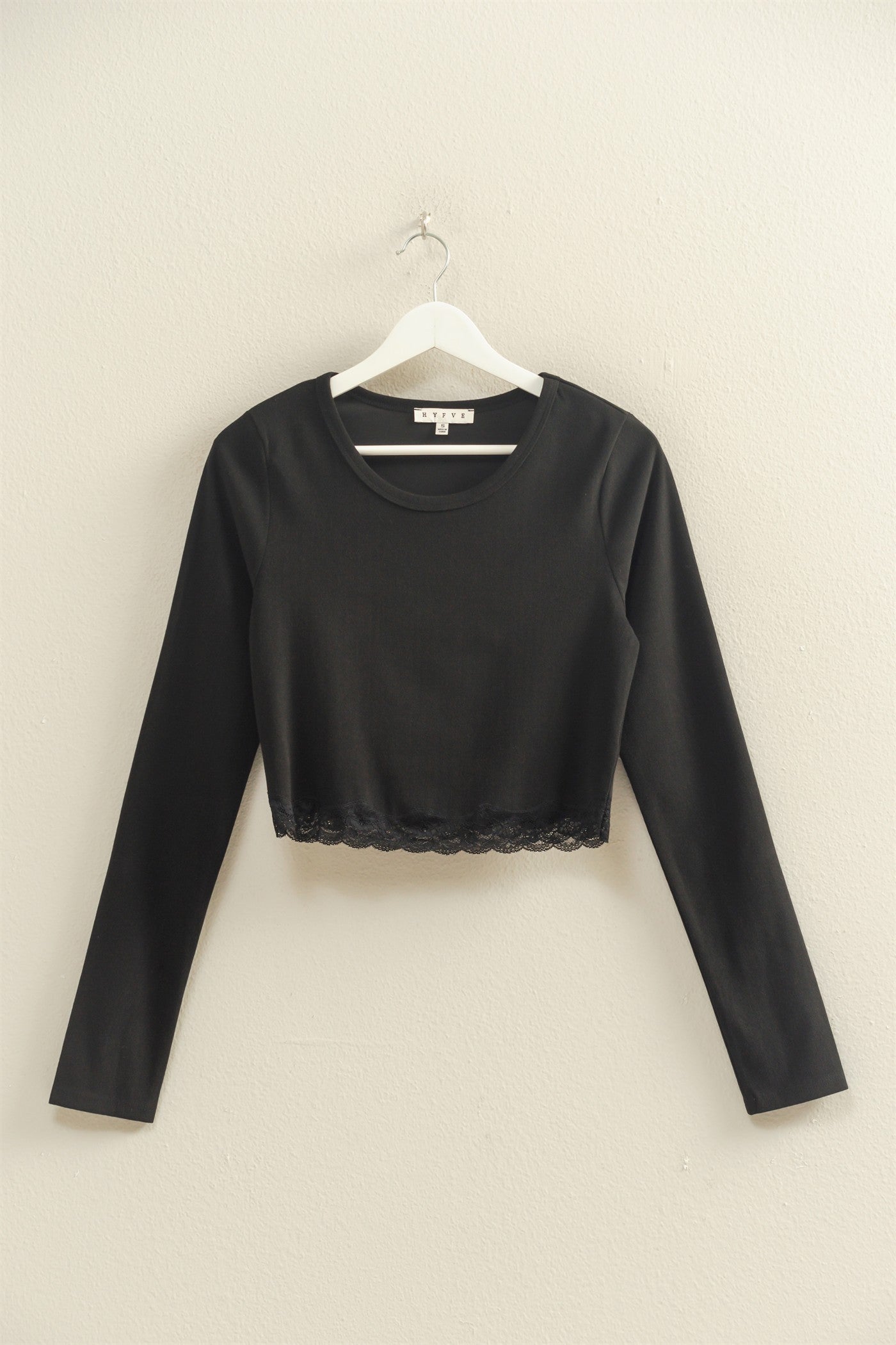 Elevate your casual outfit with this stylish and versatile top, featuring a charming long sleeve top complete with delicate scallop trim details that add a touch of femininity.