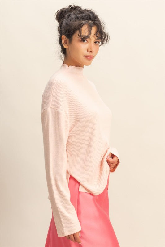 Make countless memories in this cozy little top! It is crafted from soft ribbed fabric into an oversized silhouette to lend you a chic yet laid-back look. High neck, long sleeves and twin side slits at hem complete the look.]