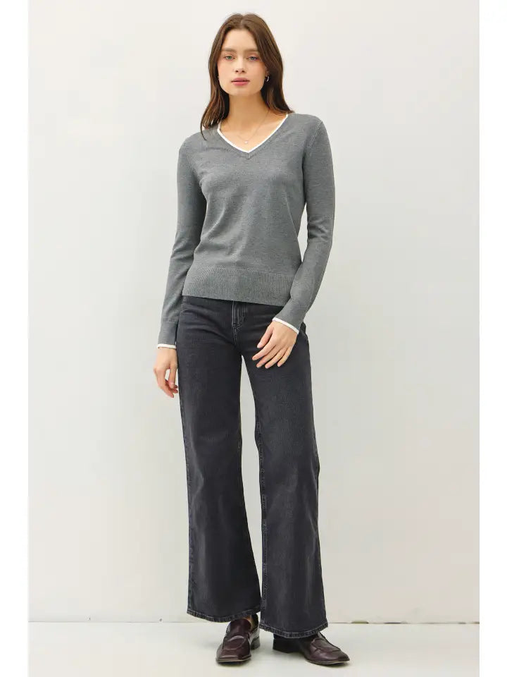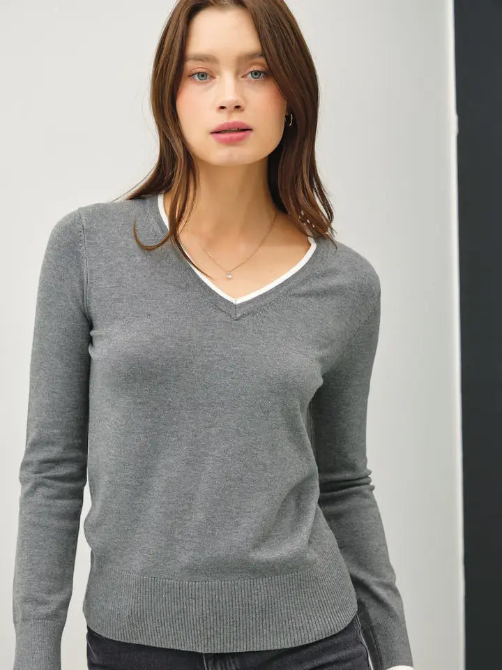 Get cozy and stylish with this cheeky varsity-style knit sweater. Featuring a relaxed fit, hip-length cut, and playful accent colors on the neck and cuffs, it’s perfect for those crisp fall and winter days. The classic V-neckline and ribbed bands keep things comfy and effortlessly preppy—just what you need to cheer on your favorite team or rock that casual-cool look. Long sleeves and a soft knit fabric make it your new go-to for layering and lounging.