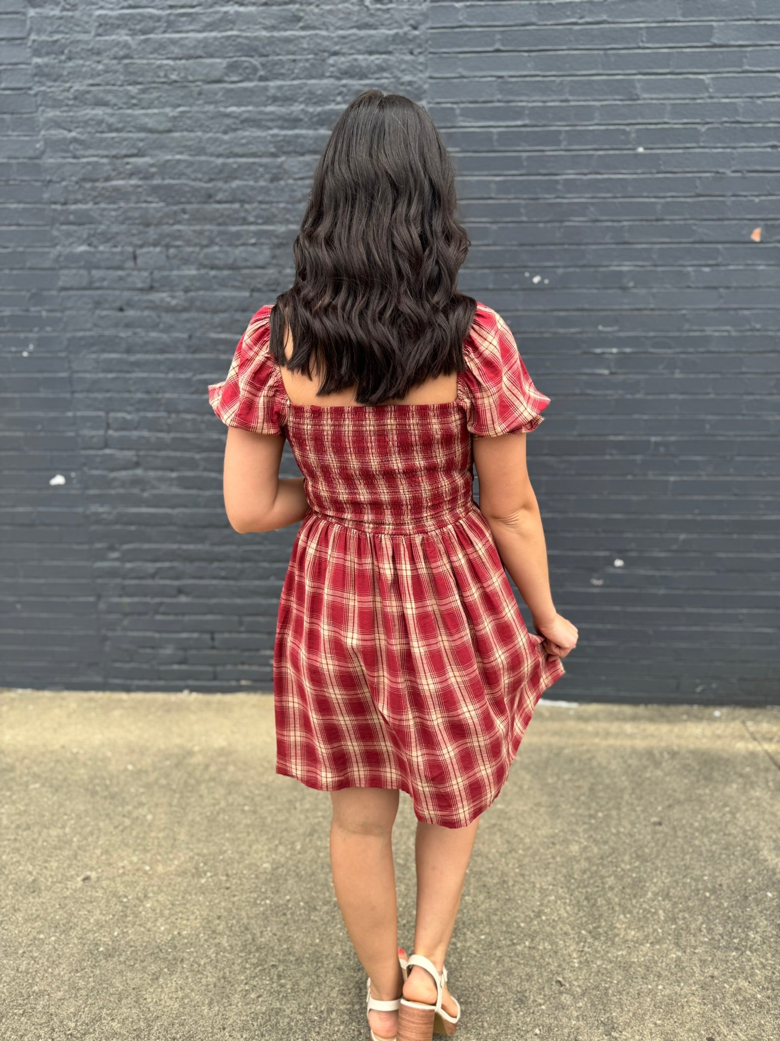 The Zelda Plaid Dress blends charming vintage vibes with modern comfort. Featuring a flattering square neckline and short puff sleeves with elastic cuffs, it highlights your silhouette while ensuring ease of movement. The smocked bodice gently hugs your frame, and its A-line mini skirt creates a playful, flirty look. The classic plaid pattern adds timeless appeal, making this dress perfect for both casual outings and stylish occasions. Elevate your wardrobe with a piece that’s as comfortable as it is captivating.